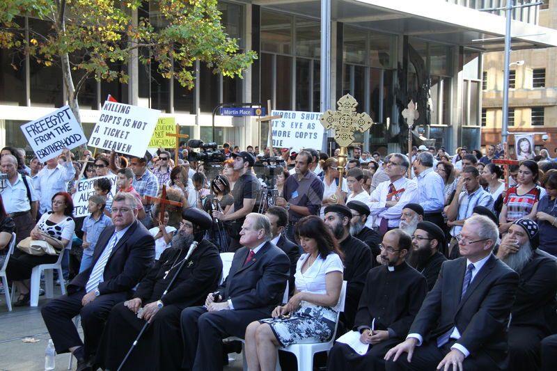 Up to 2000 people attended a protest in earlier today in Sydney to stand in solidarity with Coptic Christians in Egypt. The event was attended by Church leaders, Politicians, Community leaders and Amnesty Australia. Members of parliament from the Australian Parliament and NSW State Parliament were present and all delivered great speeches calling for an end to the persecution. The event received plenty of radio and newspaper coverage on the day including breaking news items focusing on the United Nations. A full report will be released within the next 24 hours.