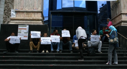Rights news website called to a protest in front of Journalists’ Syndicate against Minister of Information for sexually harasses Nada Mohammed, the reporter of the website.