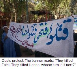 "Copts are targeted because they are meek and unable to defend for themselves," Reverend Abram told Coptic News Bulletin. "Besides, Muslims know very well that they will never be prosecuted for killing a Copt.". He explained that they would not dare do the same things to a Muslim, because they would get killed. "Unfortunately Coptic blood is cheap. We demand fairness and equal application of the law, for homicides committed against Copts."