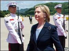 US Secretary of State Hillary Clinton has assured South Korea of America's full backing in the growing crisis over the sinking of one of its warships.With tensions rising rapidly, the North has reacted angrily to trade and shipping sanctions announced by the South.