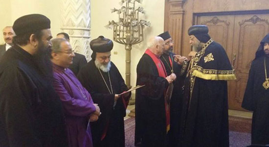 Pope Tawadros II, Pope of Alexandria and Patriarch of Saint Mark See, received on Wednesday, the heads of Christian denominations and Bible House organization to celebrate 150 anniversary on the issuance of the Arabic translation of the Bible.