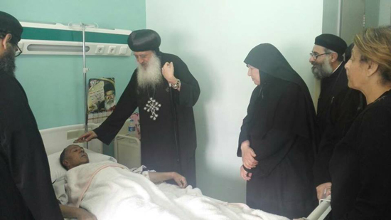 Spokesman of the Coptic Orthodox Church said that this is the third visit of the bishop to the injured people of the attack in the hospitals, and this time he was accompanied by a delegation from St. George monastery for nuns.