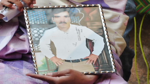 She pulls out a framed photo of her son, pictured wearing a button down white shirt and a thick mustache. When Masih's three-year-old daughter Diya sees his photo, she reaches for it, saying, "Mama, I want that picture."