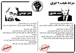 6 April movement in Suez has launched a campaign against the presidential candidates: general Ahmed Shafik and Amr Moussa, entitled “He shouldn’t govern”.