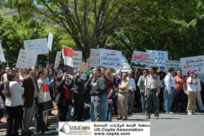 Protesters denounced what they described as aggression against Christians in Egypt. "Christians are denied the right to build churches," Gibrael said.