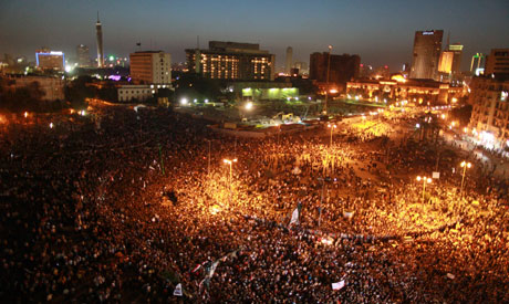 "Entering a completely packed #Tahrir after four hours of marching and ppl are reenergized again http://pic.twitter.com/kJKSg9nq"