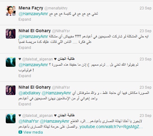 Hamzawy said on his Facebook account: Many people who trade on religion are spreading rumors in order to achieve their own benefits; I have been always believing in freedom of religion, belief as well as speech; I have always been showing love to people who belong to other religions, and I'll always be.