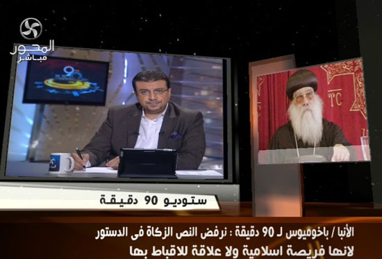 He added in 90 Minutes talk show that Zakat is an Islamic duty and shouldn't be an article in the new Constitution that is supposed to be for all Egyptians and not only Muslims.