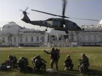 Helicopters dropped scores of US troops in the presidential palace grounds, who then moved to secure a nearby hospital.