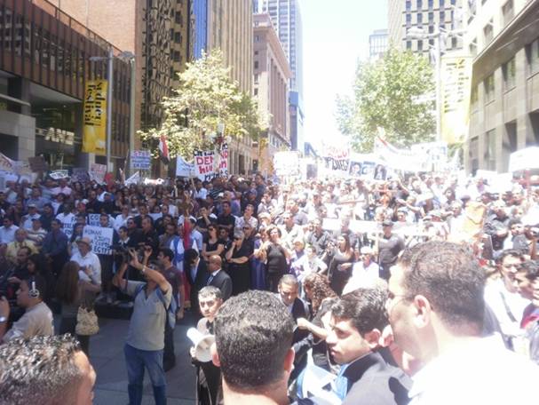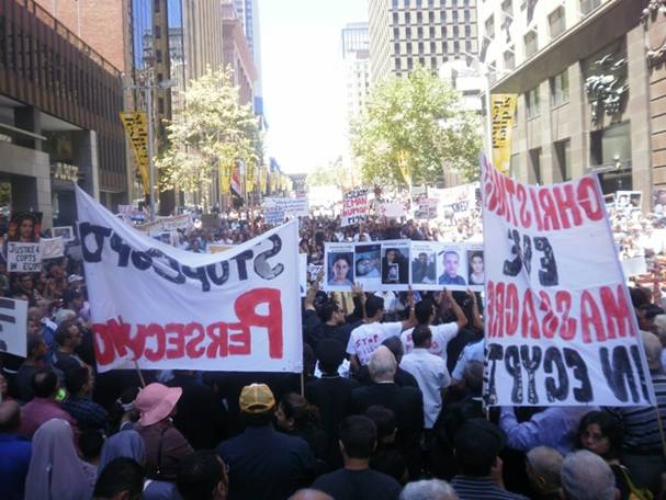THOUSANDS ATTEND the demonstration against killing Copts in Sydney