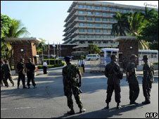 The BBC's Anbarasan Ethirajan, who is in the same central Colombo hotel as Gen Fonseka and other opposition leaders, says the troops' presence has created a very tense atmosphere.