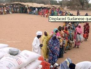 Displaced Sudanese queue for aid near Kutum.